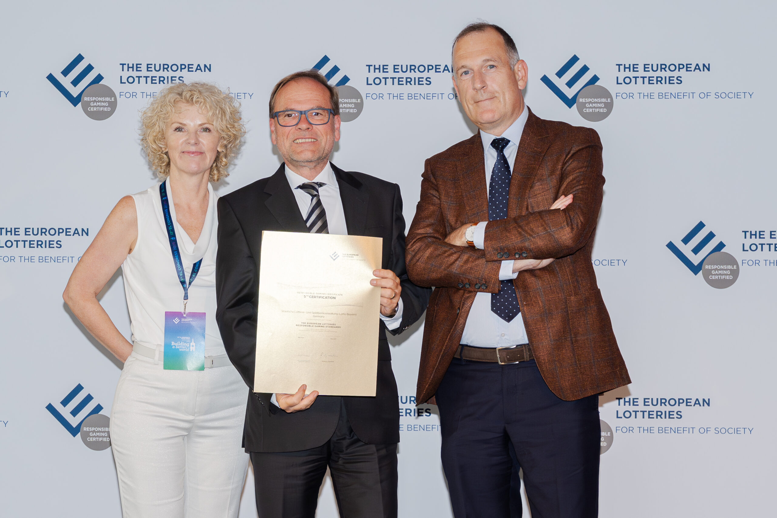 Joachim Buchwieser, Vizepräsident der Staatlichen Lotterie- und Spielbankverwaltung, nahm das Gold-Zertifikat am 16. September von EL-Präsidentin Romana Girandon und EL-Generalsekretär Piet Van Baeveghem entgegen. Die EL sind der Dachverband von 70 staatlich erlaubten Lotterieunternehmen in ganz Europa und einigen Nachbarstaaten.